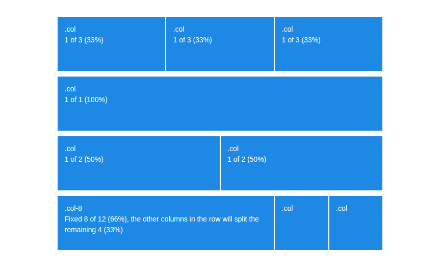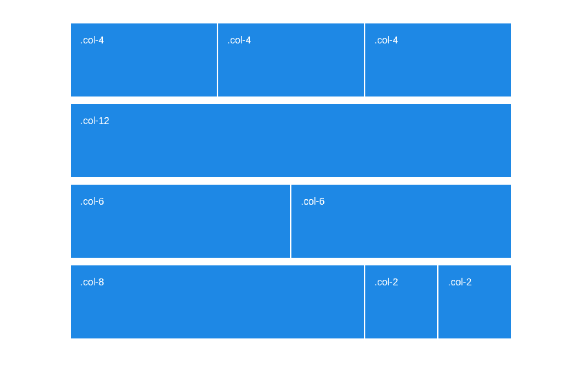 <div class="row"> <div class="col-2">.col-2</div> <div class="col-4">.col-4</div> <div class="col-6">.col-6</div> </div>