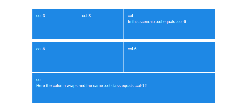<div class="row"> <div class="col-6">.col-6</div> <div class="col-6">.col-6</div> <div class="col-3">.col-3, This column will move to the next line.</div> </div>