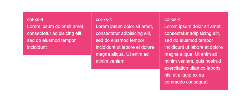 <div class="row"> <div class="col-xs-2">.col-xs-2</div> <div class="col-xs-4">.col-xs-4</div> <div class="col-xs-6">.col-xs-6</div> </div>