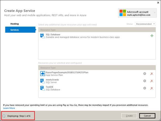 حال زمان توسعه ی اپلیکیشن با پیکربندی بالا است بنابراین فقط روی دکمه ی “CREATE” کلیک کنید. با این کار همانطور که تصویر زیر نشان می دهد توسعه ی اپلیکیشن در Azure شروع می شود.
