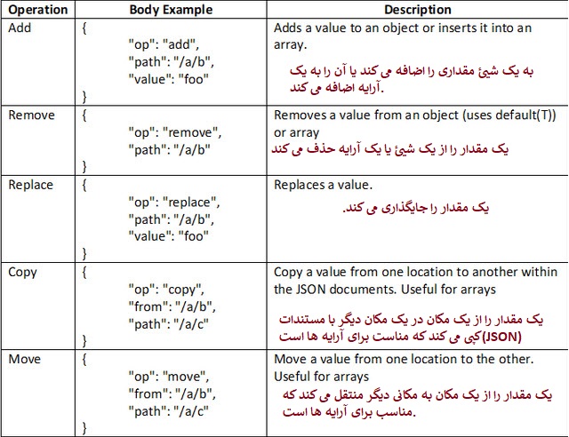 جدول زیر عملیات های patch را و توضیح استفاده از آن ها را لیست می کند: