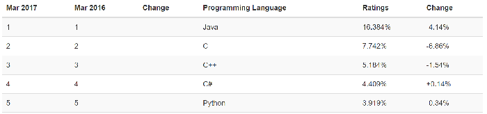 بنابر شاخص برنامه نویسی TIOBE، C# درحال حاضر یکی از پنج زبان برنامه نویسی برتر است.