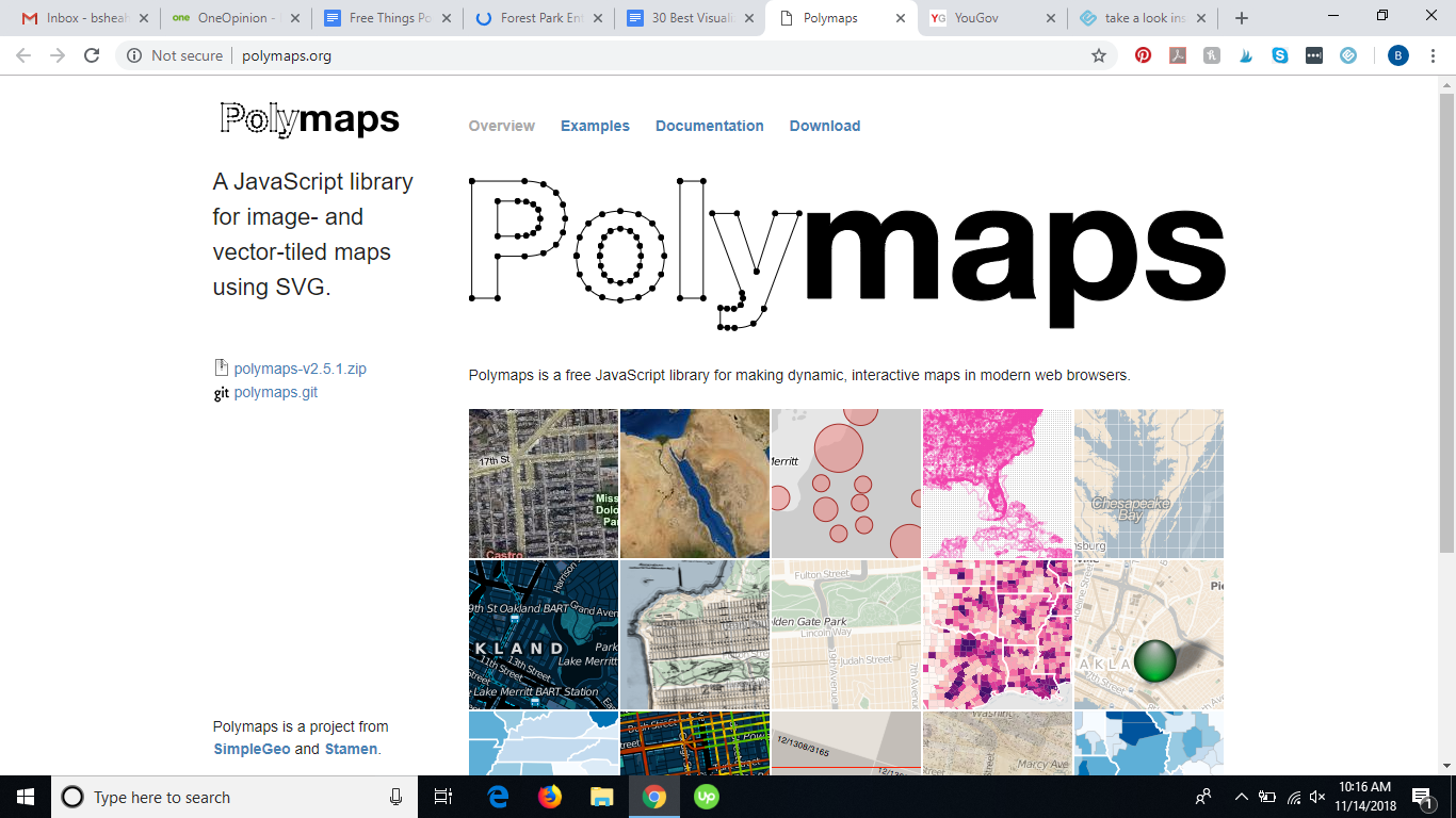 این کتابخانه یک کتابخانه جاوا اسکریپت می باشد که به جای گوگل مپ مورد استفاده قرار می گیرد و شما با استفاده از آن می توانید نقشه های تعاملی بسازید، این کتابخانه همچنین برای ساخت نقشه از روی داده های شطرنجی نیز کاربرد بسیار زیادی دارد. کتابخانه PolyMaps مبتنی بر SVG می باشد که باعث می شود تا بسیاری از استایل های CSS را نیز بتوانید در تولید نقشه ها استفاده کنید. تجربه شخصی من می گوید که این کتابخانه در مقایسه با بسیاری از کتابخانه های دیگر بسیار کاربردی تر می باشد. مانند سایر موارد بالا این کتابخانه نیز تحت مجوز BSD می باشد و کد آن را می توانید در گیت هاب مشاهده کنید.