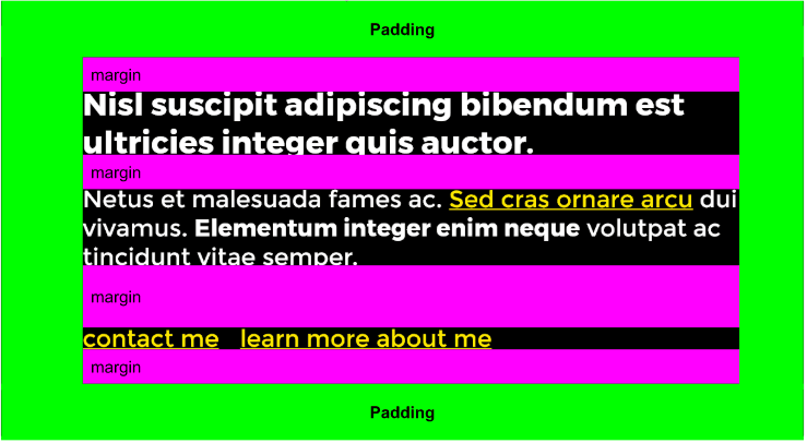 Listها، blockquoteها، paragraphها و headingها همه دارای margin هستند (در میان سایر عناصر). در حالی که گاهی اوقات آنها فقط کمی اذیتکننده هستند، margin پیشفرض بر روی پاراگرافها و headingها به نظر میرسد موردی است که بیشترین مشکلات را به وجود میآورند.