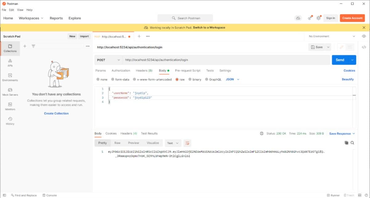 به زودی درباره جزئیات پیاده سازی اعتبارسنجی در Swagger نیز صحبت خواهیم کرد و توضیحات مفصل تری را به شما ارائه می دهیم. در گام اول اجازه دهید تا یک API controller ایجاد کنیم تا بتوانیم با استفاده از آن اعتبار یک کاربر را بررسی کنیم. این API زمانی که هویت کاربر تایید شود یک شی JSON Web Token را برای ما برمیگرداند.