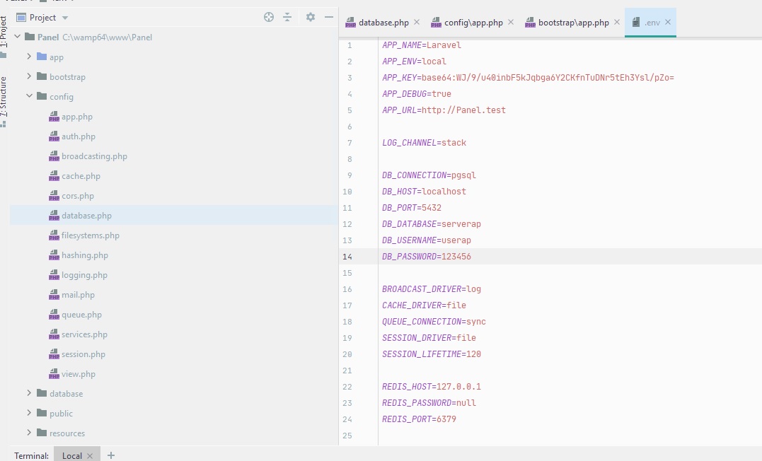 نکته : وقتی فایل .env رو تنظیم کردید دیگه نیازی نیست در فایل config/database.php هم تنظیمات رو تغییر بدید چون بصورت پیشفرض از فایل .env اون ها رو میخونه