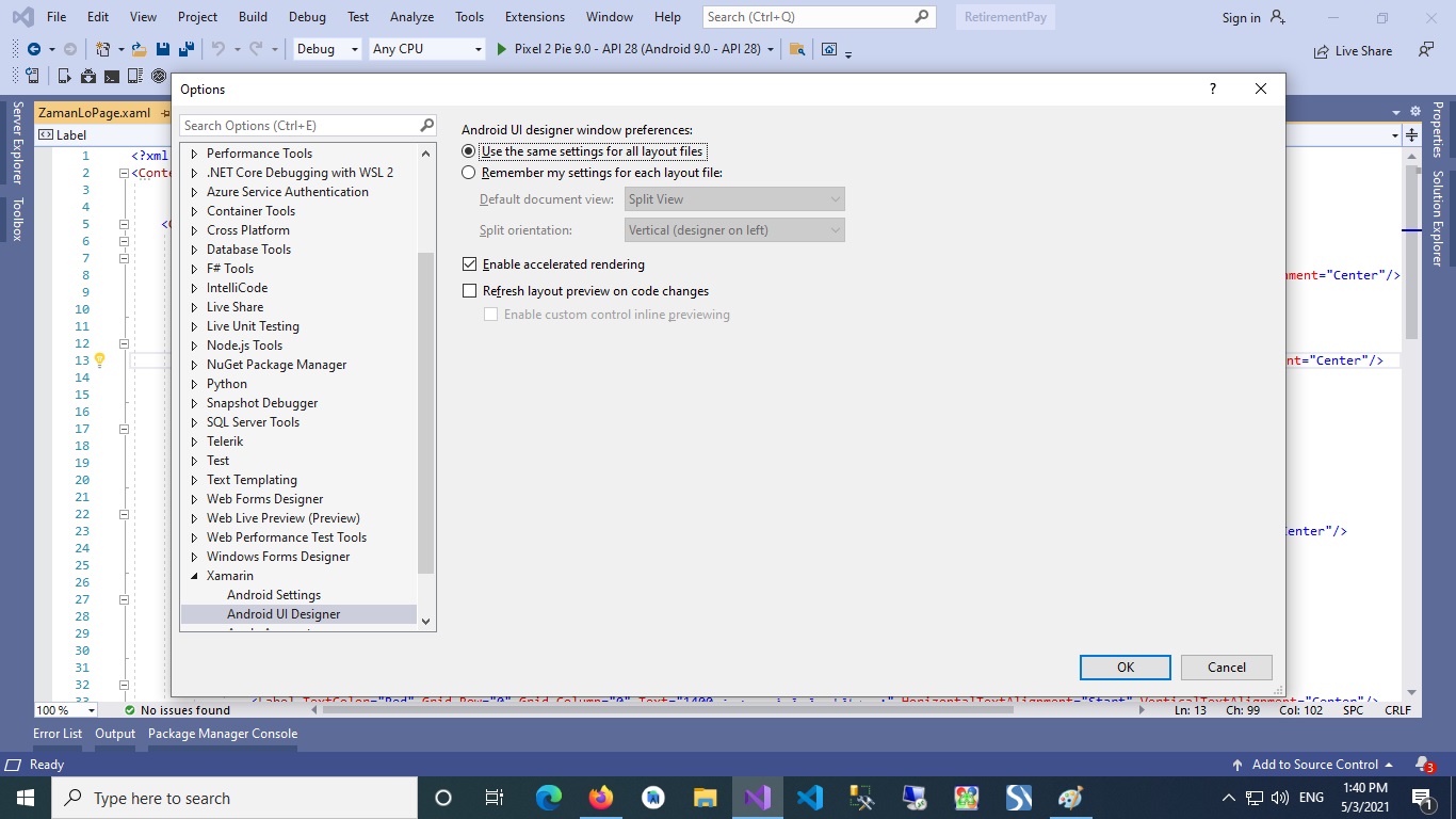 این مشکل فقط در قسمت Xamarin Forms پیش میاد ، تو Xamarin Android پیش نمیاد.