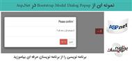 نمونه ای از Bootstrap Modal Dialog Popup در Asp.Net نمونه ای از Bootstrap Modal Dialog Popup در Asp.Net در این مقاله نمونه ای از پنجره محاوره ای Bootstrap Modal در Asp.Net را خواهید دید ، این پنجره زمانی ظاهر میشود که اکشنی اجرا شود. ASP.net 1395/01/10 برنامه نویسان 5381