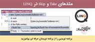 متدهای Take و Skip در LINQ متدهای Take و Skip در LINQ زبان LINQ به برنامه نویسان NET. اجازه نوشتن queryهای مختلف درزبان NET. را می دهد تا بتوانند داده ها را از بانک اطلاعاتیSQL Server بازیابی و تغییر دهند. به طور عام، LINQ اجازه ایجاد queryهای SQL در syntax زبان NET. انتخابی مان و کار کردن با مجموعه ای قوی از اشیا به عنوان نتیجه برگشتی را به ما می دهد. می توان تغییراتی را در این اشیا بوجود آورد و سپس دوباره آنها را در database ذخیره کرد. متدهای مختلفی در زبان LINQ تعریف شده اند که در مقاله متدهای Take و Skip آن را مورد بررسی قرار می دهیم. C#.net 1394/10/25 برنامه نویسان 4069