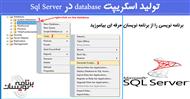 تولید اسکریپت database در Sql Server تولید اسکریپت database در Sql Server در این مقاله میخواهیم از بانک اطلاعاتی در Sql Server 2014 اسکریپت ایجاد کنیم . در SQL Server Management ما گزینه ای برای تولید اسکریپت داریم که میتوانیم برای اشیا متعدد و یا برای یک شی منحصر به فرد از آن استفاده کنیم. SQL Server 1394/10/08 برنامه نویسان 6489