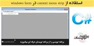 استفاده از context menu strip در windows form استفاده از context menu strip در windows form در این مقاله ما به شما نحو ی استفاده از Context Menu Strip برای اجرای بعضی از عملیات ها در windows form را توضیح میدهیم. C#.net 1395/02/22 برنامه نویسان 9597