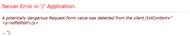 بررسی خطای A potentially dangerous Request.Form value was detected from the client بررسی خطای A potentially dangerous Request.Form value was detected from the client بررسی خطای A potentially dangerous Request.Form value was detected from the client در ارسال html در صفحات asp ASP.net 1393/06/20 ایمان مدائنی 4180